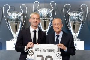 这位阿根廷小将自带光环,眼神中透着灵气,极具魅力。即便那些从未看过他比赛的人,也会被他激起热情。马斯坦托诺拥有如丝绸般细腻的左脚技术,总在场上主动要球,热衷于挑战,还带着阿根廷球员特有的赛场拼劲。我敢说,用不了多久马斯坦托诺就能成为皇马主力,他最终会与姆巴佩、维尼修斯组成皇马锋线三叉戟,我愿意为此打赌。